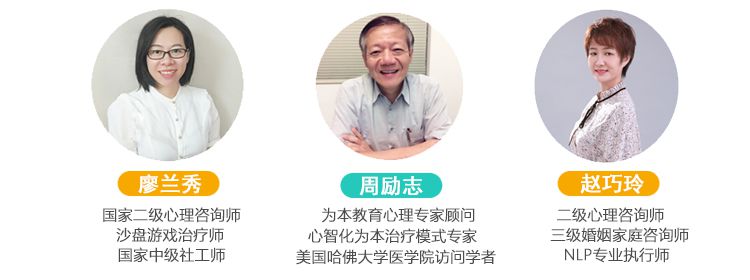 周鈺清為本教研專家導師國家二級心理咨詢師美國NGH催眠治療師中國心理健康委員會理事廣東省心理咨詢師協(xié)會理事個人簡介為幼兒園、小學、初中、高中等不同年齡段家長舉辦親子溝通講座及沙龍,加強家、校互動,結(jié)合家長、學校共同為孩子的心理成長獲取更適合的方法;對特殊兒童、問題兒童開展個體、團體心理輔導;設(shè)計不同年齡段兒童社交能力、學習能力、增強